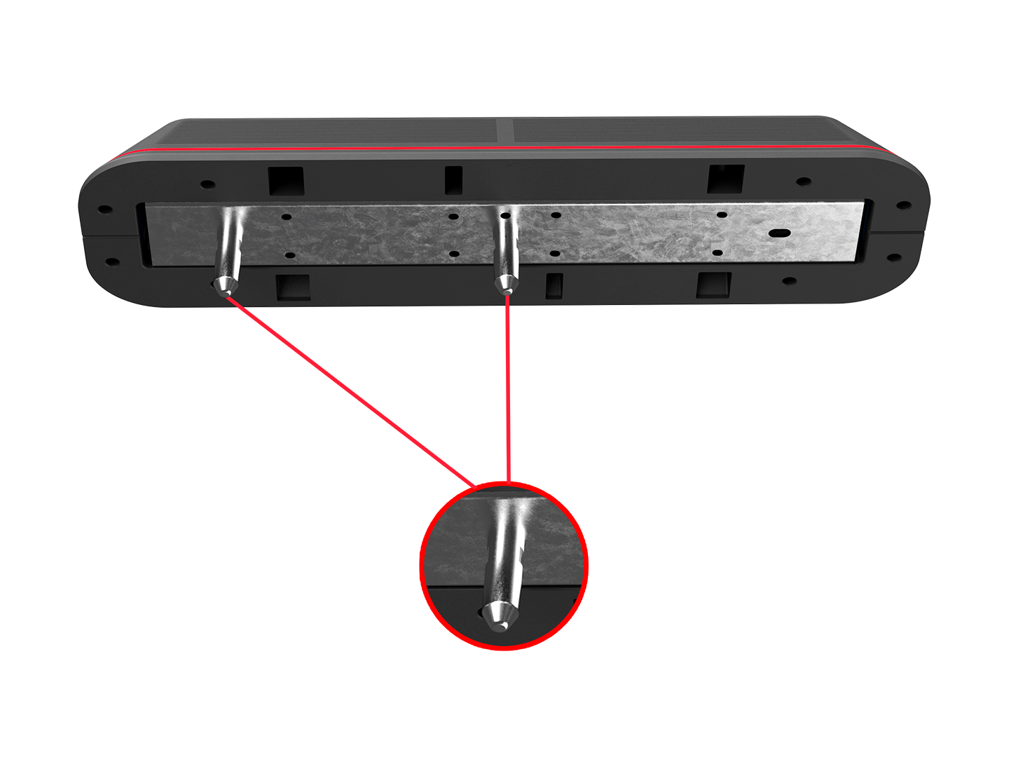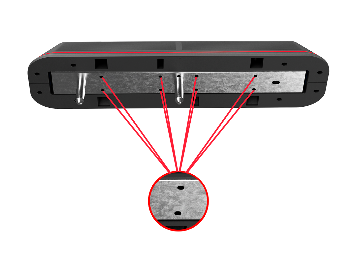 Befestigungslöcher im Unterteil zum Anschrauben der Bauteile auf Badeplattform.